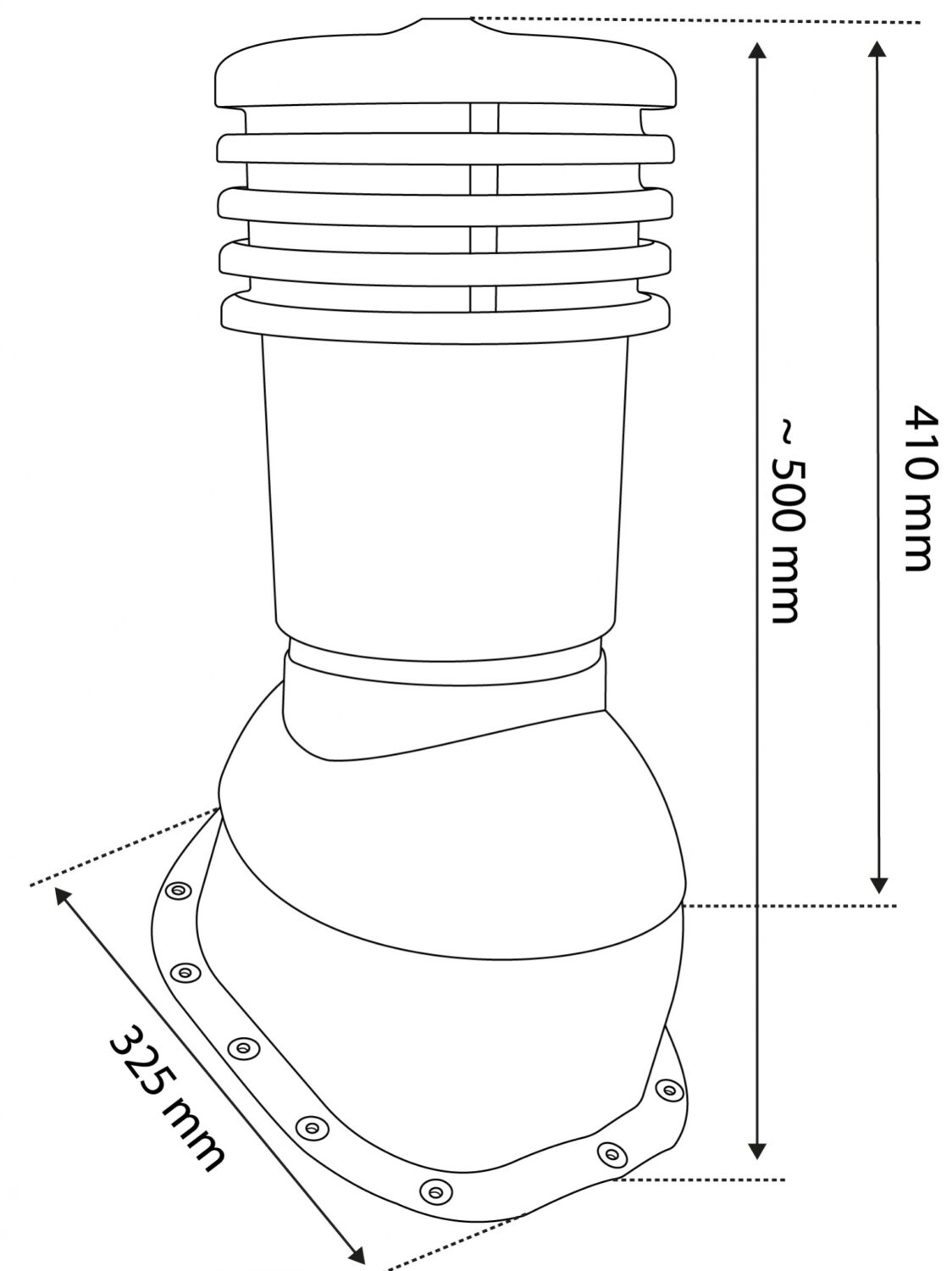 Kominek dachowy VENTOS X ma przekrój wentylacyjny 170 mm i średnicę 150 mm. Został wykonany z wysokiej jakości tworzywa sztucznego, co gwarantuje trwałość i niezawodność. Stosowany jako wyrzutnia dachowa przewodów wentylacji grawitacyjnej , mechanicznej czy hybrydowej, stosowany również jako odpowietrznik do pionów kanalizacyjnych.