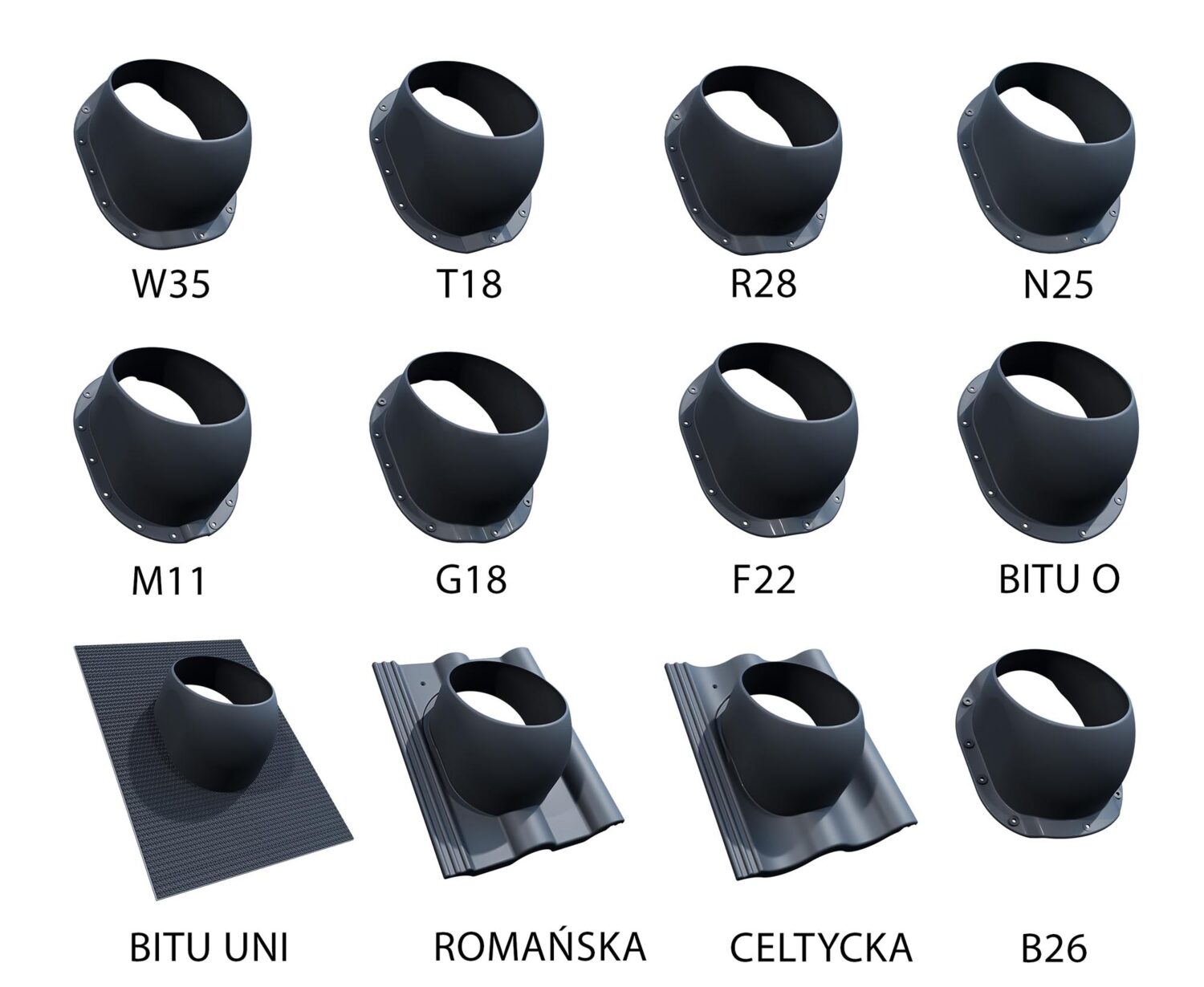 Kolory (RAL): 7021, 7024, 8004, 8017, 8019, 3009, 6020, 9005