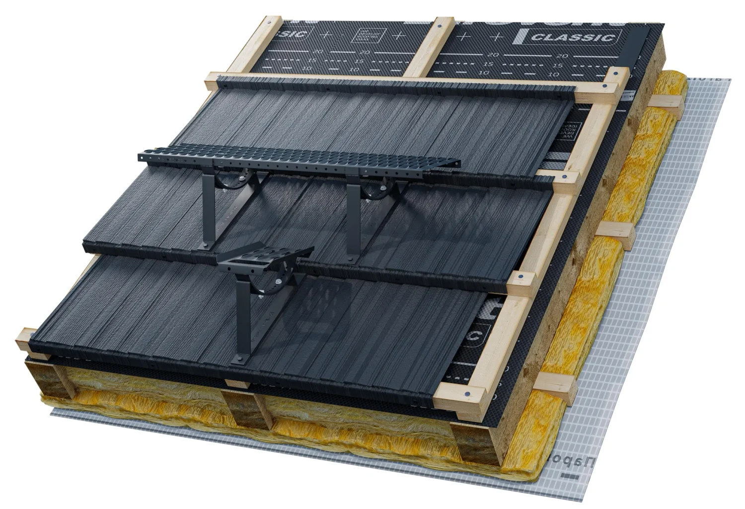 Kompletny zestaw montażowy, w którego skład wchodzą dwa wsporniki Eurovent® SUPPORT METAL JANOSIK, dwie kołyski Eurovent® GRIP, komplet śrub montażowych oraz ława kominiarska Eurovent® PLATFORM. Elementy wykonane z wysokiej jakości stali ocynkowanej tworzą spójny system umożliwiający bezpieczne poruszanie się po połaci dachowej o nachyleniu od 15° do 60°. Zestaw oferowany jest w kilku wariantach kolorystycznych, malowanych proszkowo zgodnie z paletą RAL.
