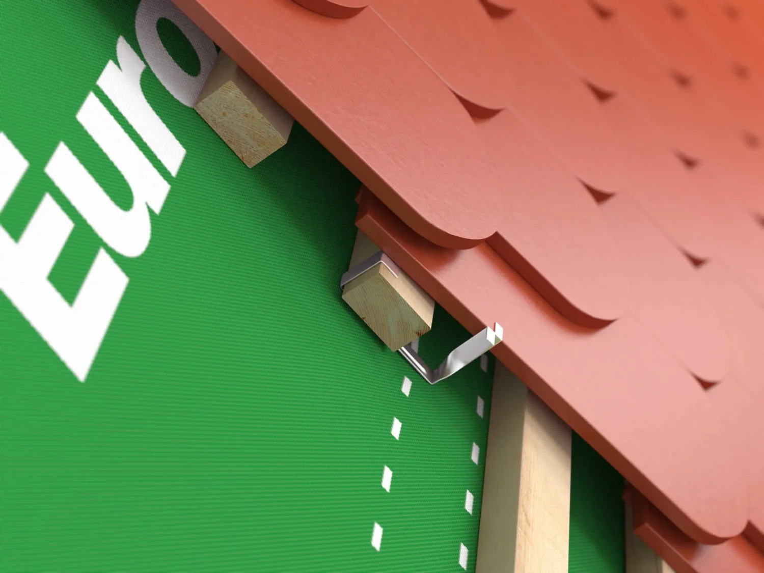 Eurovent® SPINKA BIBER przeznaczona jest do mocowania dachówek ceramicznych typu karpiówka. Montaż polega na zaczepieniu jednego końca spinki o łatę, a drugiego o boczną krawędź dachówki. Skutecznie chroni dachówki przed podrywaniem przez wiatr oraz przed działaniem sił ssących występujących na połaci dachowej.
