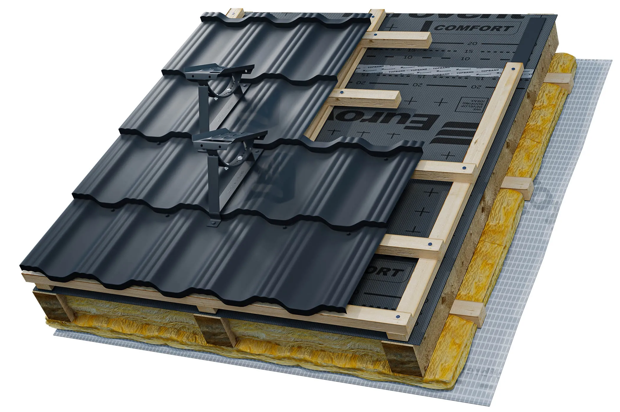 Przeznaczony do profilowanych pokryć dachowych metalowych profilowanych – blachodachówek o module GERMANIA 350/30 mm.