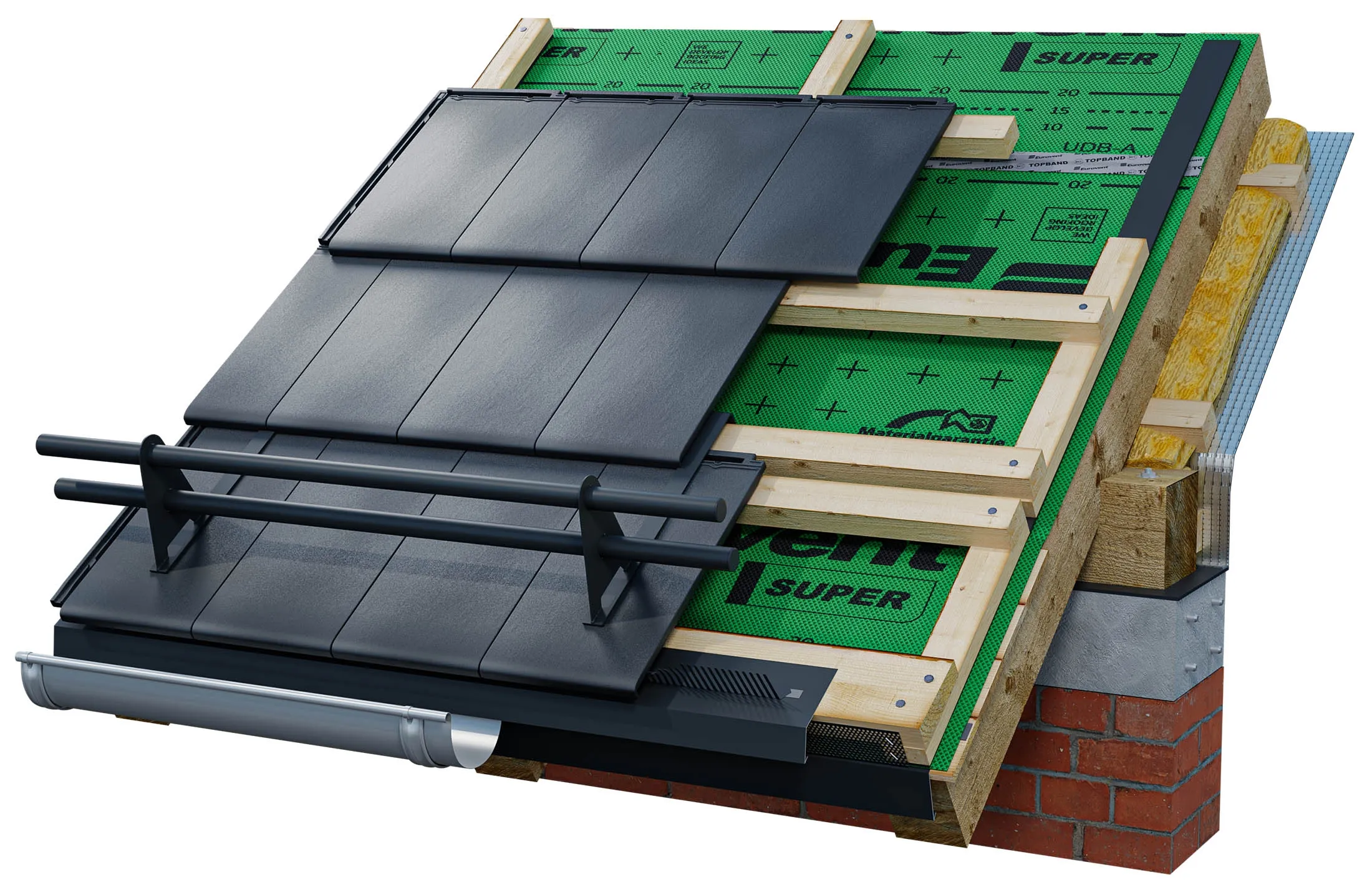 Wspornik rury przeciwśniegowej Eurovent® FIX TUBE DB-DC LONG przeznaczony jest do stabilnego montażu rury przeciwśniegowej. Stanowi element systemu zabezpieczeń, umożliwiający skuteczne mocowanie rur na dachach skośnych pokrytych dachówką betonową lub ceramiczną o niewielkich formatach. Montaż produktu jest szybki i nieskomplikowany – wspornik instalowany jest pod dachówką, bezpośrednio do konstrukcji nośnej dachu.