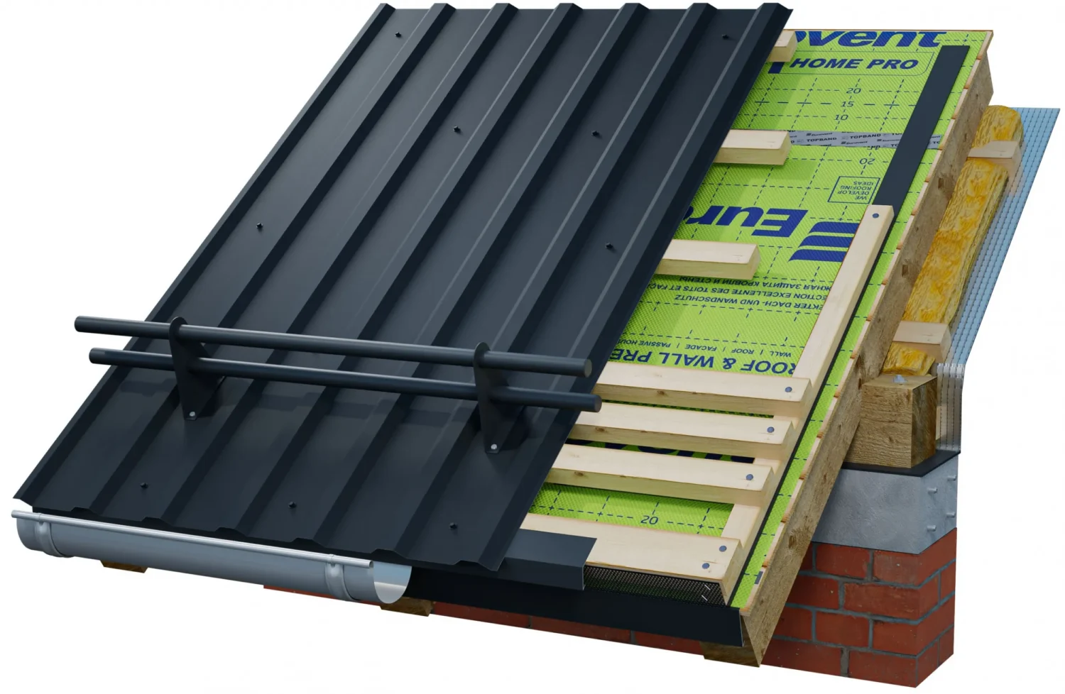 Wspornik rury przeciwśniegowej Eurovent® FIX TUBE UNI przeznaczony jest do stosowania na dachach skośnych z płaskim pokryciem jako element systemu przeciwśniegowego. Umożliwia stabilne i bezpieczne mocowanie rury przeciwśniegowej na połaciach skośnych. Montaż produktu jest szybki i nieskomplikowany – wspornik mocowany jest bezpośrednio do deskowania lub konstrukcji dachu za pomocą wkrętów, a następnie przykrywany łupkiem.