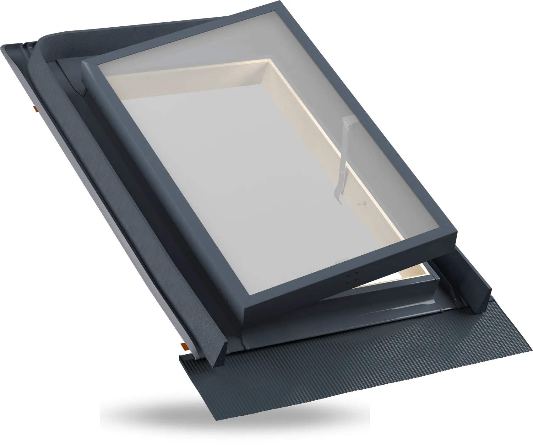 Dzięki zastosowaniu specjalnego metalowego uchwytu skrzydło wyłazu można uchylić i zablokować w dwóch pozycjach, zapewniających efektywną wentylację wnętrza. Wyłaz wyposażono w system zawiasów umożliwiający otwieranie skrzydła zarówno do góry, jak i na bok. Uniwersalny kołnierz uszczelniający pozwala na montaż wyłazu na wszystkich rodzajach pokryć dachowych.