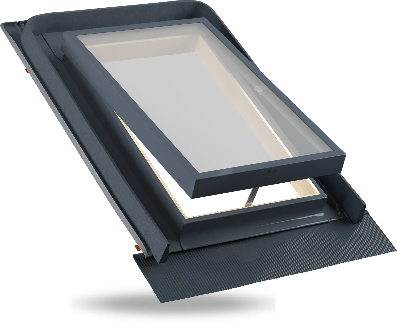 Wykonany jest z drewna sosnowego impregnowanego metodą próżniową. Skrzydło wyposażono w podwójną szybę zespoloną o grubości ok. 15 mm, osadzoną w trwałym profilu aluminiowym. Produkt posiada zintegrowany kołnierz wykończeniowy, przystosowany do montażu na pokryciach dachowych płaskich, falistych oraz wysokoprofilowych. Wyłaz oferuje dwie pozycje wentylacji oraz fabrycznie zamontowany system otwierania – od dołu lub z lewej strony – z możliwością konfiguracji zgodnie z preferencjami użytkownika. Przeznaczony jest do poddaszy oraz dachów o kącie nachylenia od 15° do 60°.