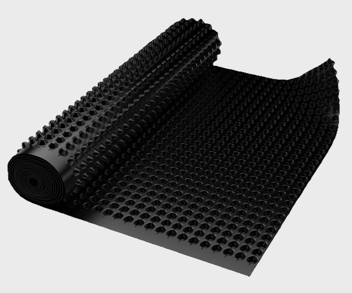 Wytłaczana folia fundamentowa wykonana z polietylenu wysokiej gęstości (HDPE) z wytłoczeniami o wysokości 20 mm. Przeznaczona do ochrony i drenażu izolacji fundamentów w układzie pionowym i poziomym. Dzięki wysokim wytłoczeniom skutecznie odprowadza wodę, chroniąc ściany fundamentowe przed wilgocią. Charakteryzuje się dużą odpornością na ściskanie oraz działanie kwasów, zasad, rozpuszczalników, bakterii, grzybów i korzeni roślin.